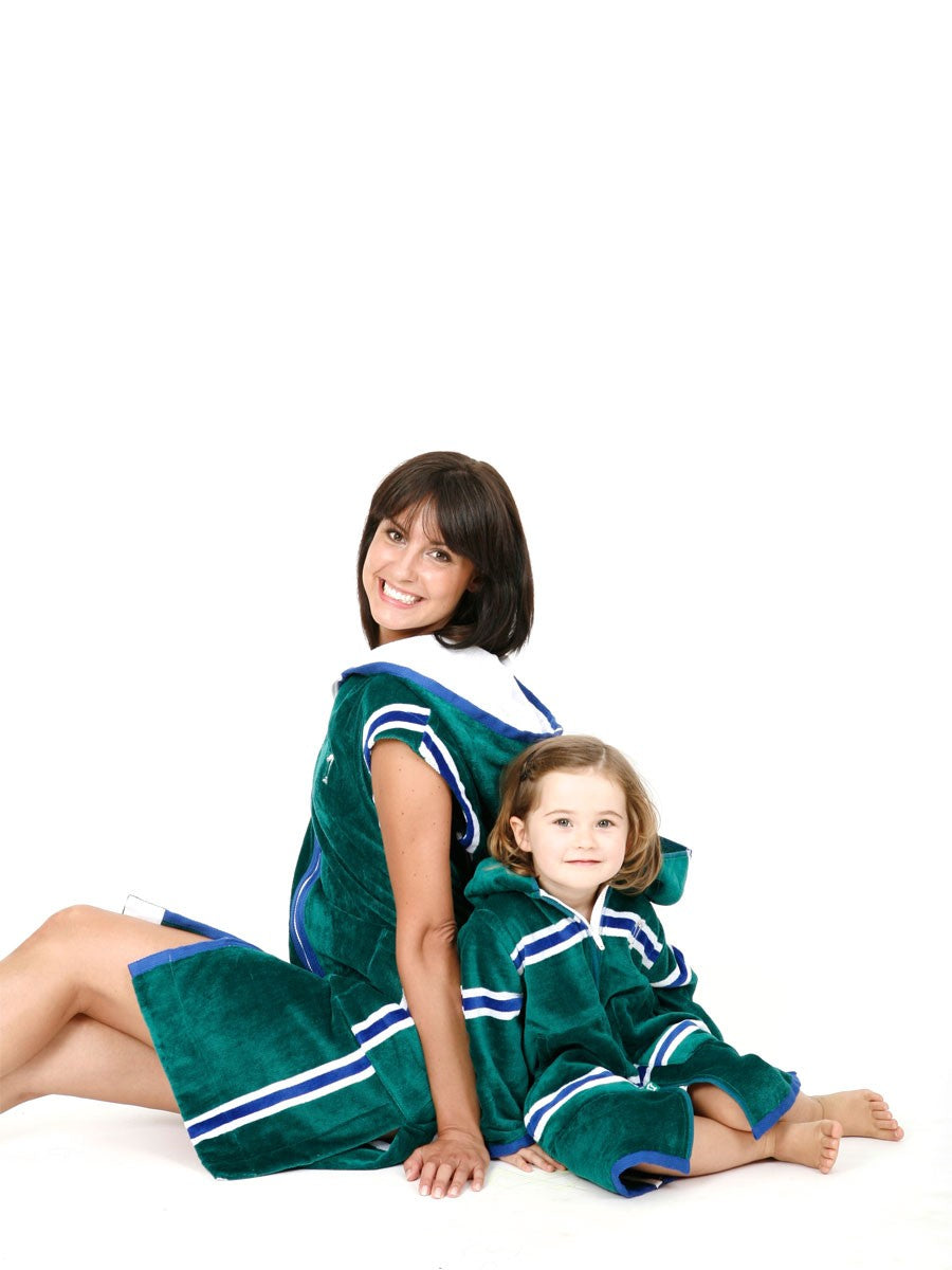 These deluxe swim robes are made from thick cotton towelling with a YKK zipper to keep icy wind out.