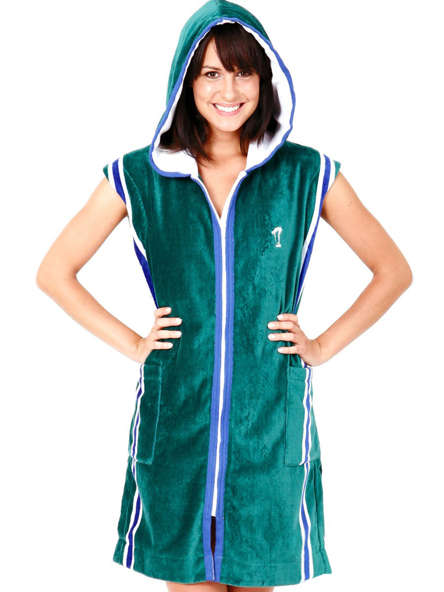 Once you slip into one of these soft towelling robes you will find it hard to take a trip to the pool or beach without it. Fabric is thick, soft and highly absorbent. Unique features include a full length molded zipper for easy on and off dressing plus made of the highest quality for life long rust-free action. Luxuriously lined, oversized hood for sun protection and all that wet hair! Fully covered internal seams for comfort and durability.