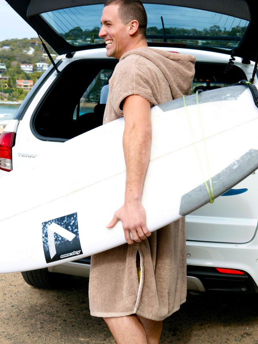 These surf ponchos are such a great investment for anyone who know the experience of changing for a swim, surf or paddle in the carpark, especially on icy cold mornings or windy afternoons. Also perfect for those not skilled with wrapping and securing a towel when changing.