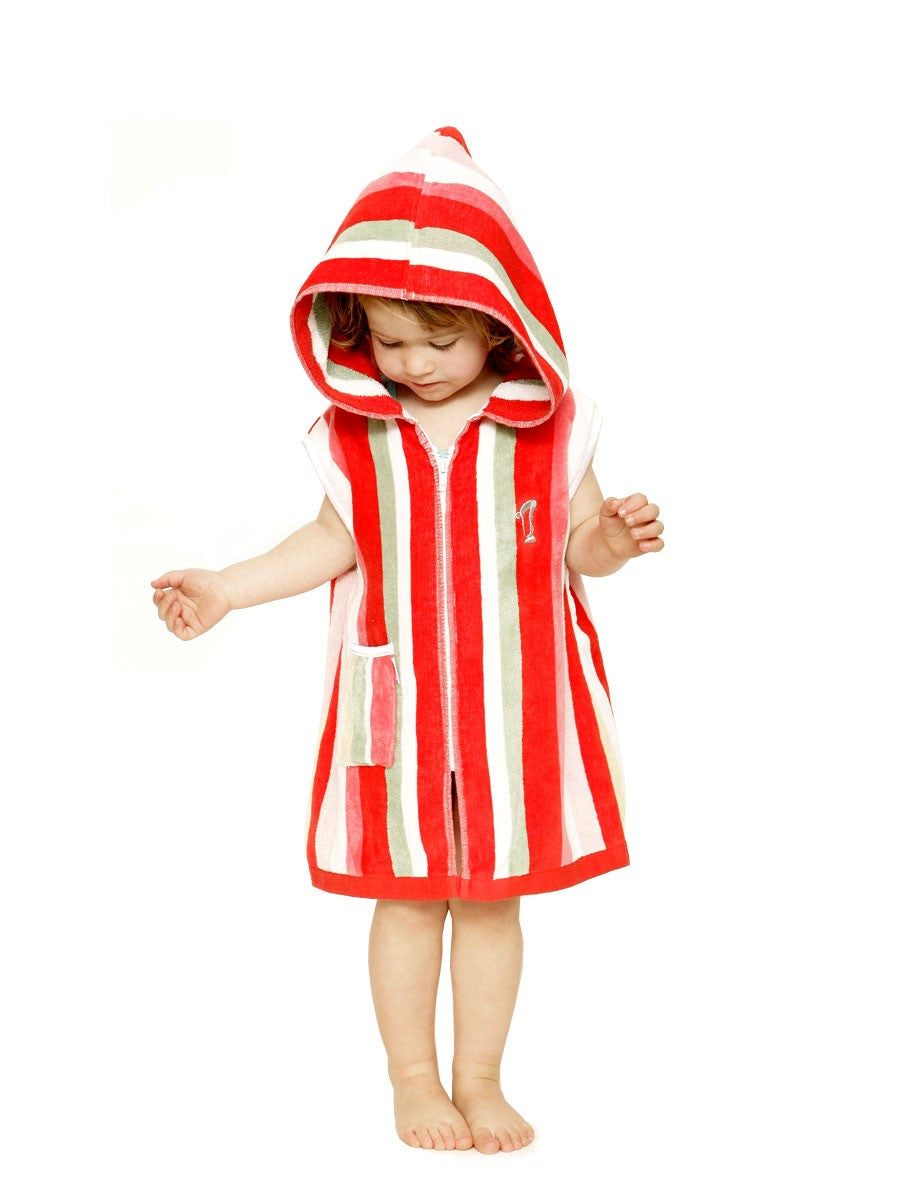 Made offshore from comfortable and absorbent 100% cotton towelling. Over sized hood for sun protection and warmth. Terry loops on inside for absorbent drying, velour on the outside for soft touch and to reduce sand capture. Distinctive, high quality Terry Rich Diver embroidery. Knee length cut long enough to sit on in a car seat. A very handy summer beach robe for kids that love to swim.