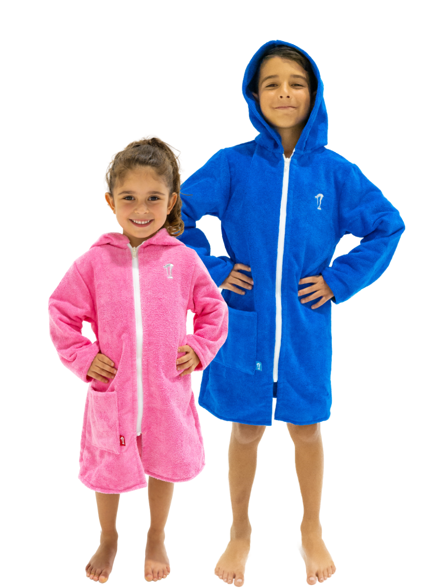 These microfibre swim robes are essential for every little swimmer! Perfect for after swimming practice or even a day at the beach. Our swim robes do an amazing job and warming, drying and protecting precious skin from the sun.
