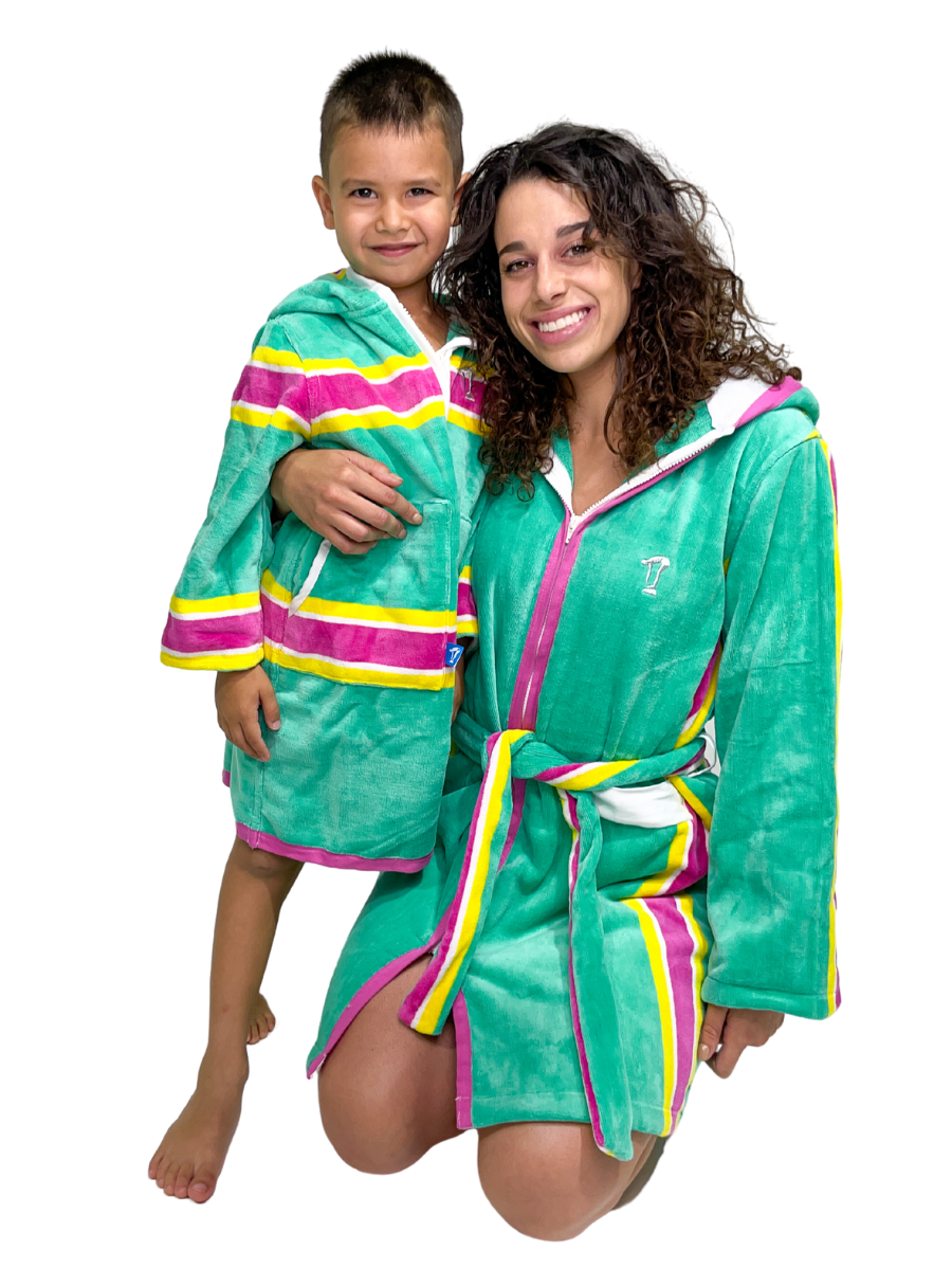 The fun doesn't need to stop out of the water! Dry your little one in one of our vibrant swim robes.
